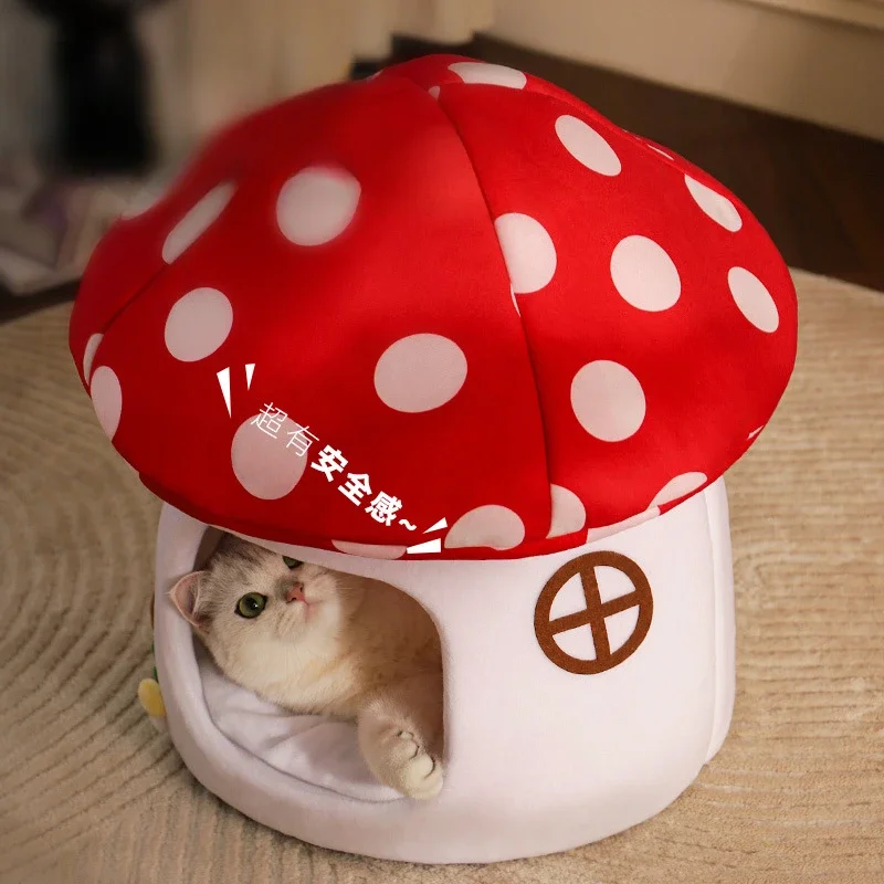 Half-Enclosed Mushroom Cat Bed Adorable and Functional Sleeping Hiding Cat House Dog Bed Pets Cat Bed Dog Accessories