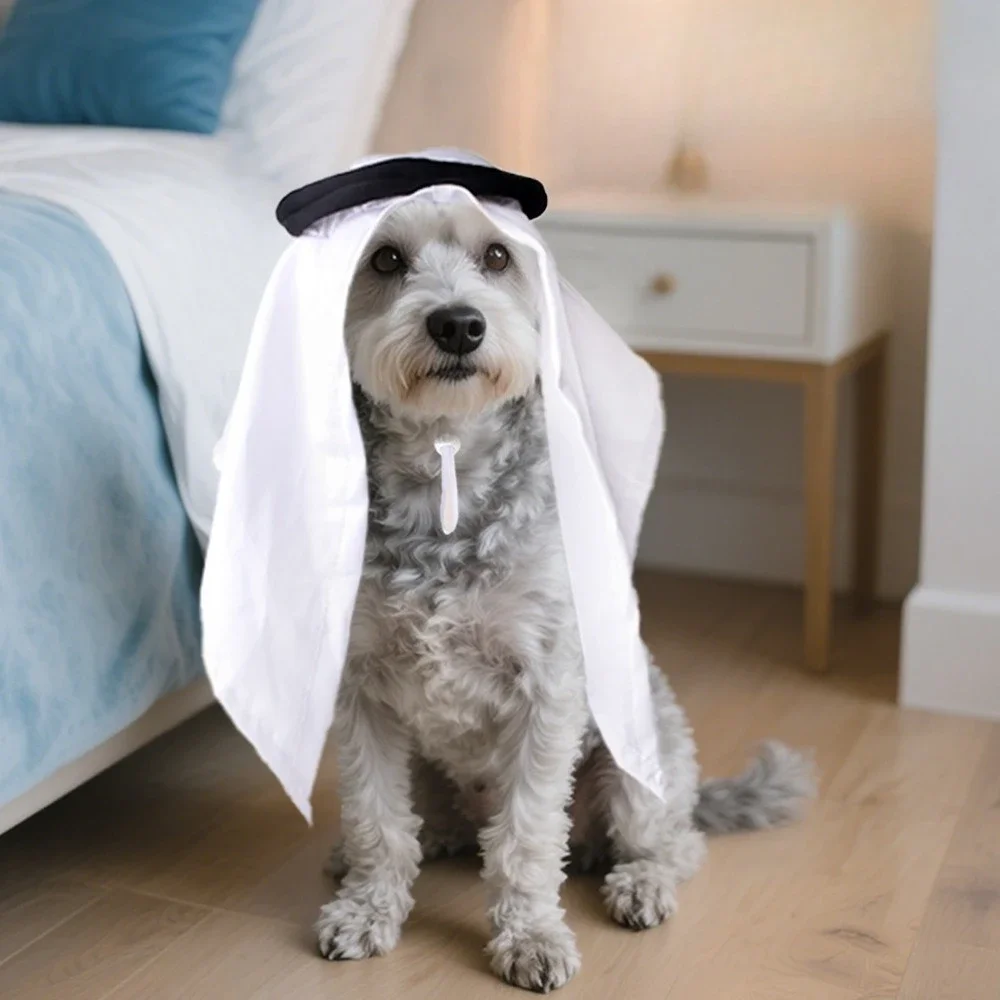 Dress your pet in style with this Saudi Arabia-inspired Halloween Pet Costume Hat. This funny cat hood features a cute scarf design, perfect for Halloween parties and festive dress-up occasions.