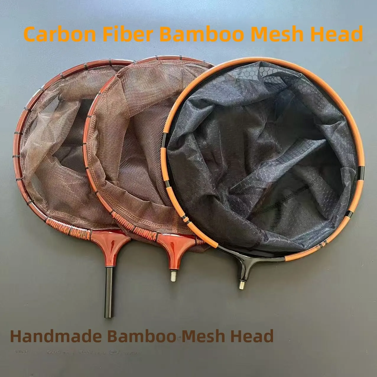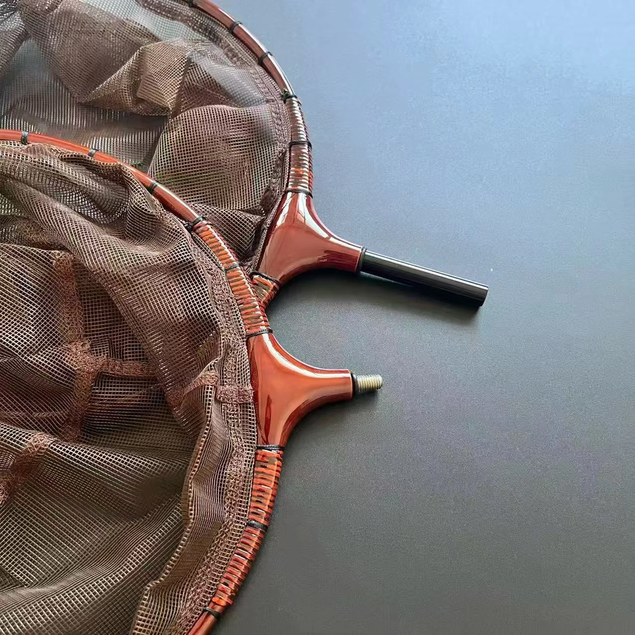 Handmade Bamboo Carbon Metal Insert Fishing Net Head for Outdoor Travel