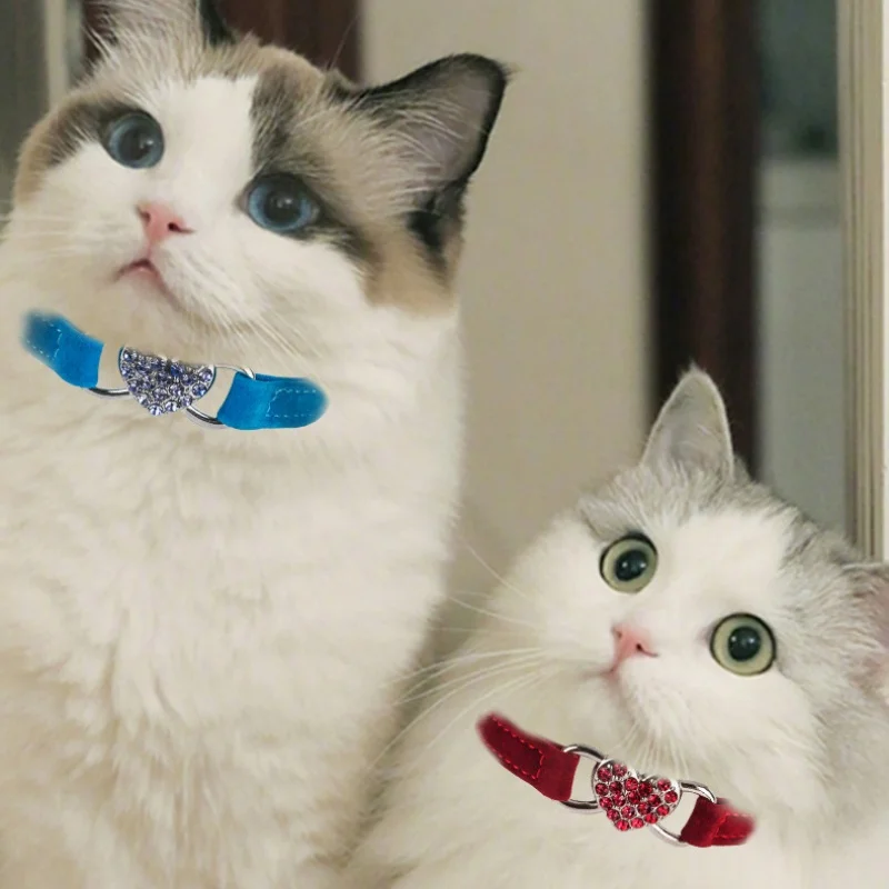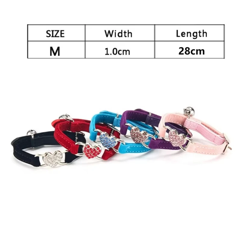 Heart Shaped Cat Collar with Bell is a stylish and functional accessory for your pet. This adjustable collar is designed for comfort and safety, featuring a soft velvet texture and a charming heart shape. The collar includes a small bell, allowing you to keep track of your pet’s movements while adding a touch of elegance to their look.