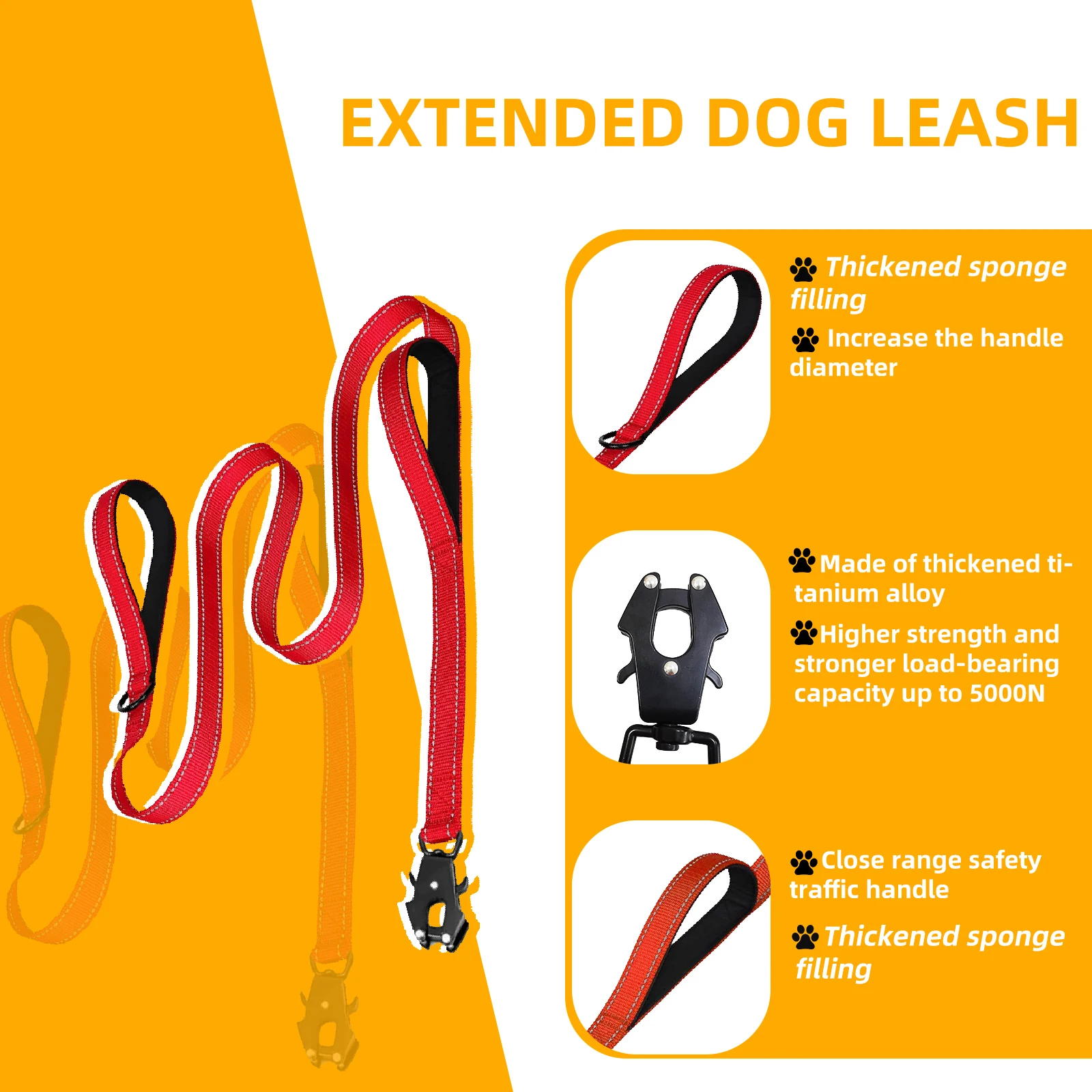 This heavy-duty dog leash is designed for medium and large dogs, providing safety and comfort during walks. The leash features a reflective design for visibility in low light conditions and is equipped with two soft padded handles for better control. The auto-lock frog clip ensures a secure attachment to your dog’s collar or harness.