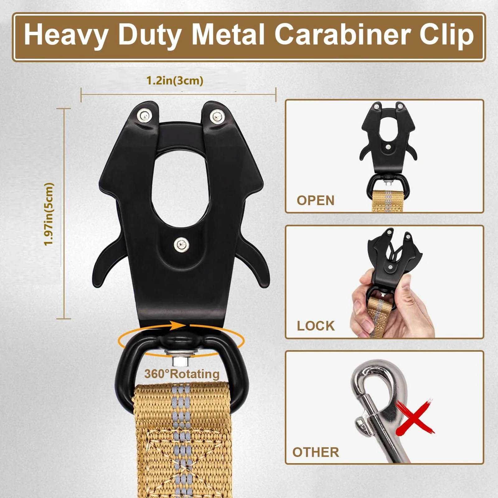 - Heavy Duty Frog Clip: Constructed from aviation aluminum alloy, this clip can endure over 150kg of pulling force and includes a quick release and locking mechanism for safety.