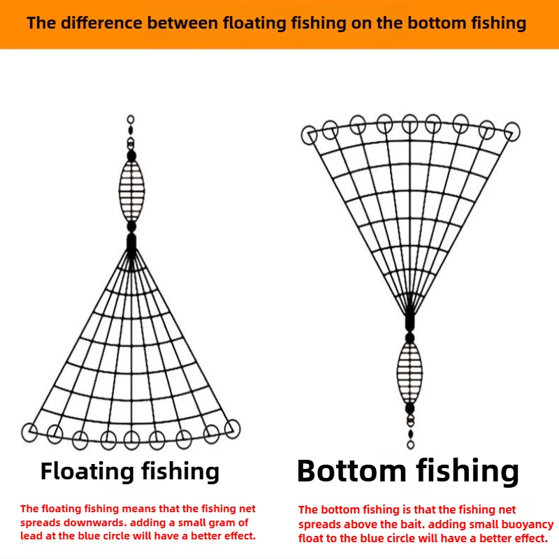 High Carbon Steel Frame Fishing Net Trap Mesh Luminous Bead Netting Sea Fish