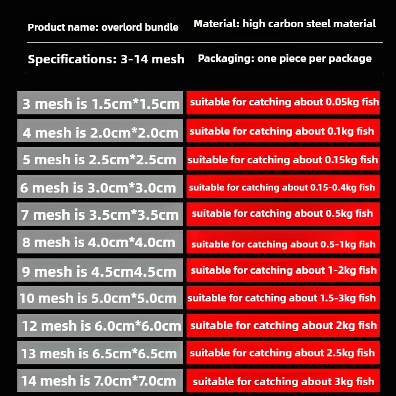 - Mesh sizes: 2×2 cm, 3×3 cm, 3.5×3.5 cm, 5×5 cm, 6×6 cm