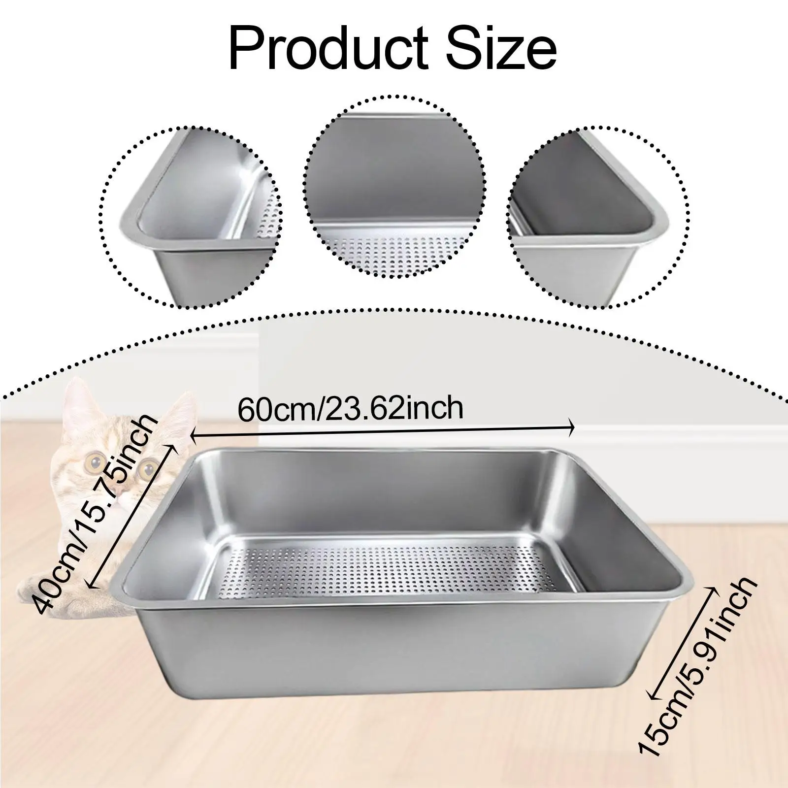 Cat Litter Tray Stainless Steel High Sided Litter Box for Small Animals