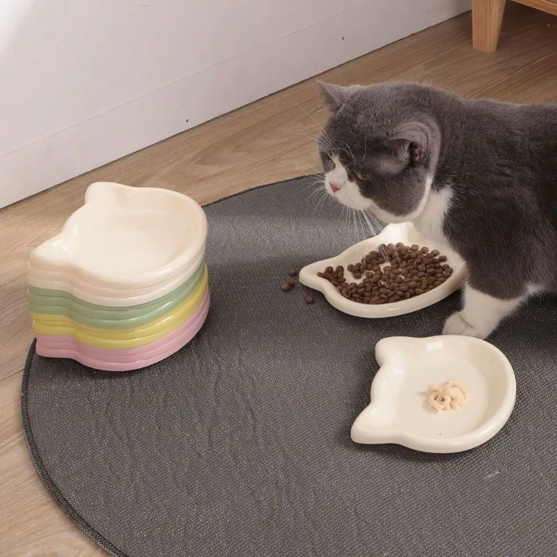 Home Pet Cat Bowl Plastic Food Dish for Kittens Low Profile Non Slip Feeding Plate