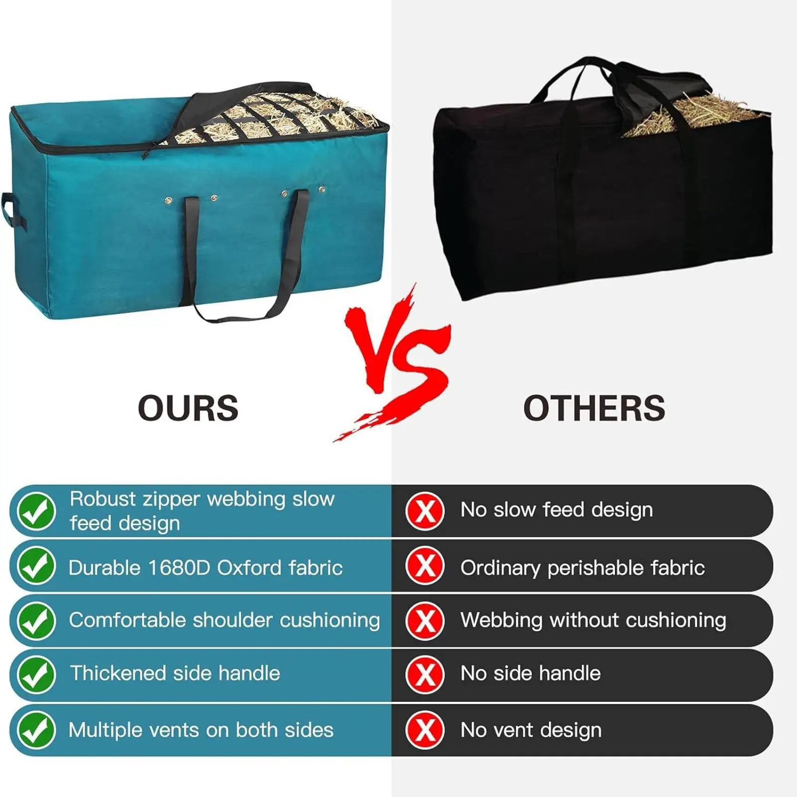 - Easy to Carry: Lightweight with a strong handle, this hay bag ensures easy portability while maintaining dependable performance during transport and use.