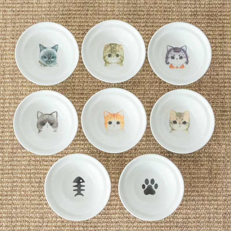 High-end Pet Bowl Bamboo Shelf Ceramic Cat Feeding and Drinking Bowls