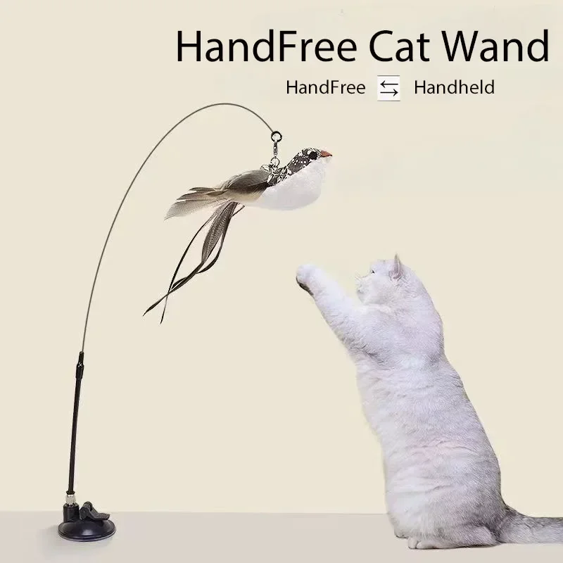 Engage your cat with this interactive hand-free cat stick playing kit. Designed to provide endless fun, this teaser wand toy features a suction cup that allows for easy attachment to various surfaces, making playtime enjoyable for both you and your feline friend.