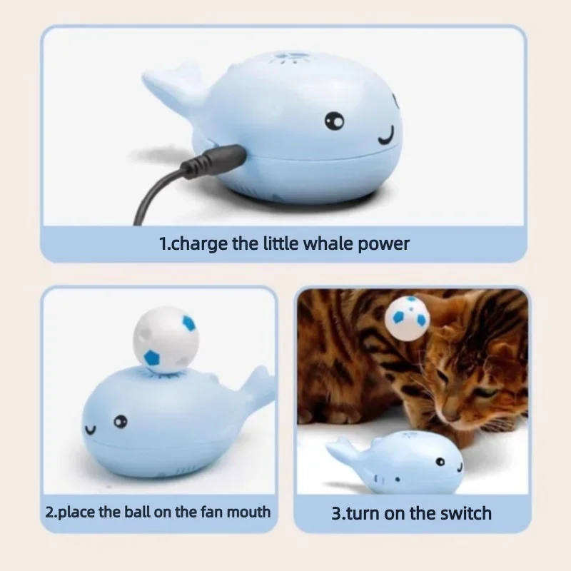 Interactive Cat Toys Electric Jet Floating Ball Whale Shaped Pet Toy USB Fan