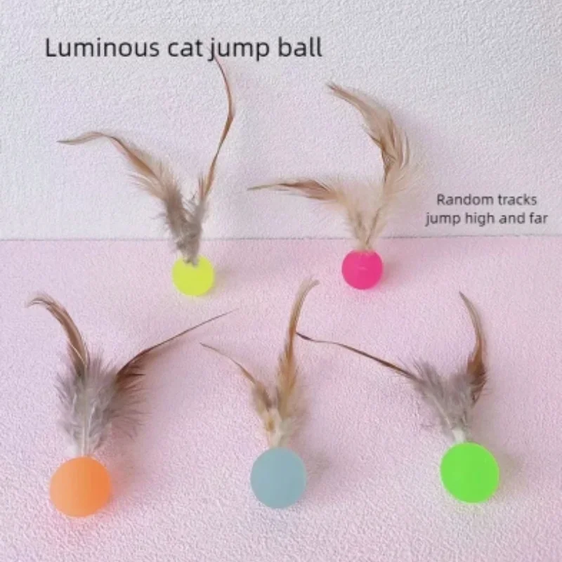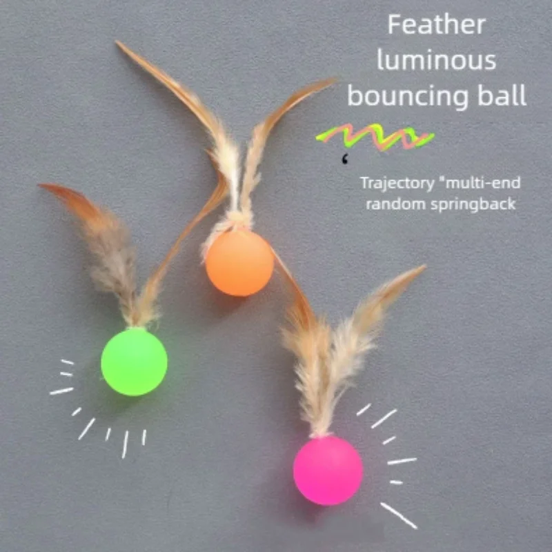 Interactive Cat Ball Toys 1 to 3 Pcs Bouncy Balls with Feathers Indoor Play