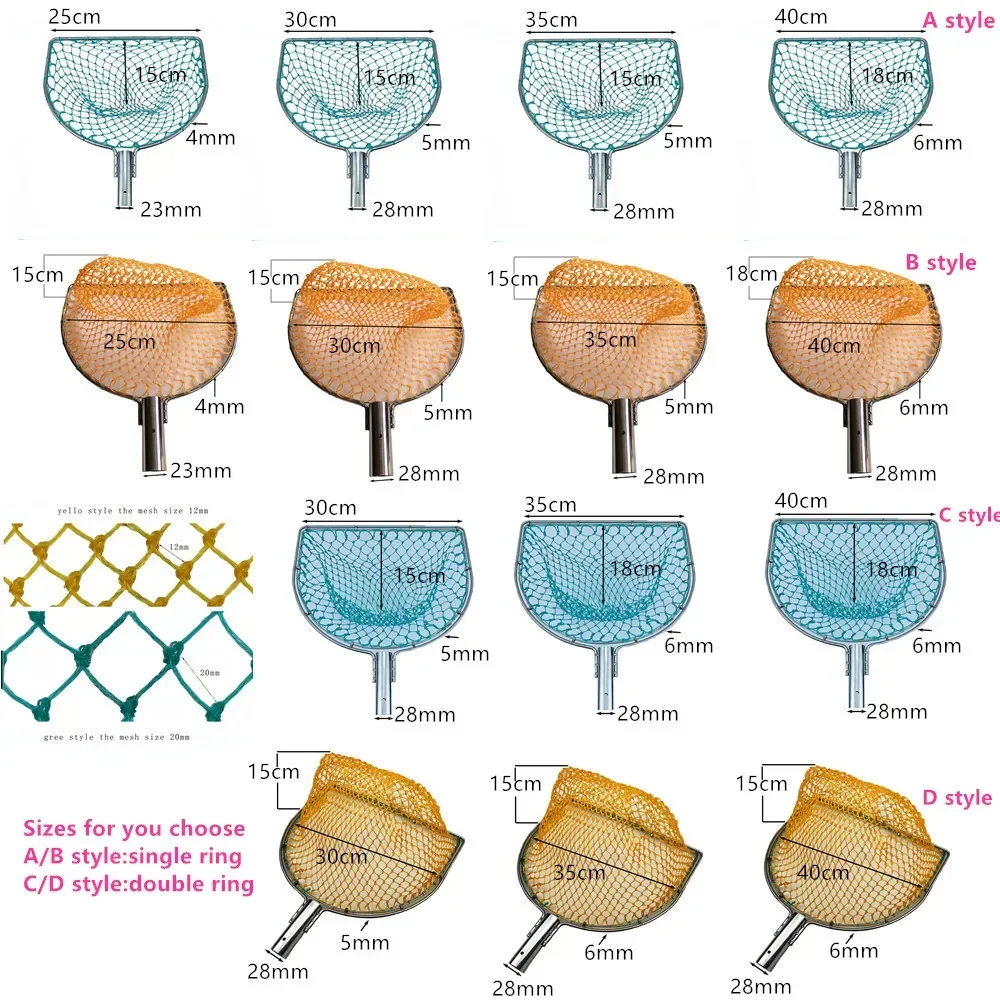 Landing Net for Fishing Replace Head Flat Stainless Steel Ring Nylon Net 25cm-40cm