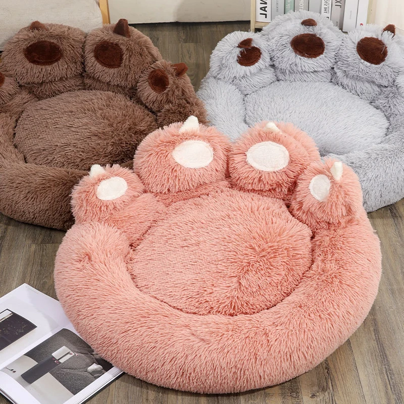 Large Fluffy Dog Bed Cat Pet Sofa Cute Bear Paw Shape Comfortable Cozy Pet Bed