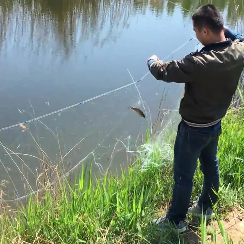 Drawstring Fishing Net Heavy Duty Fish Locating Catching Guard Netting Basket