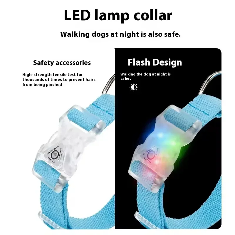 This LED Adjustable Reflective Cotton Dog Collar is designed for small, medium, and large dogs, ensuring safety during night walks and outdoor adventures. The collar features bright LED lights and 360° reflective strips for enhanced visibility in low-light conditions.