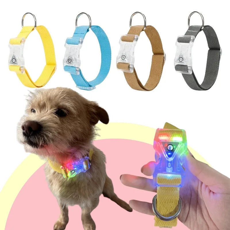LED Adjustable Reflective Cotton Dog Collar Elastic Pet Neckband for Dogs