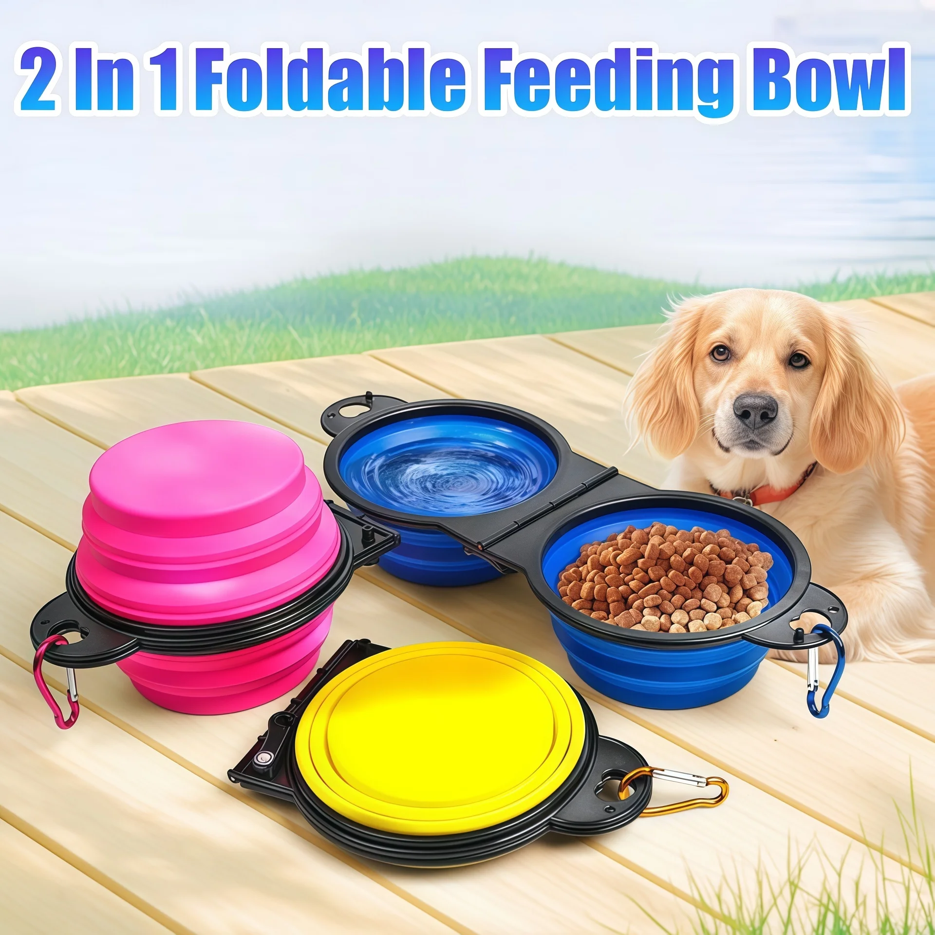 2 in 1 Collapsible Dog Travel Bowl Double Bowls Folding Food Water Bowl