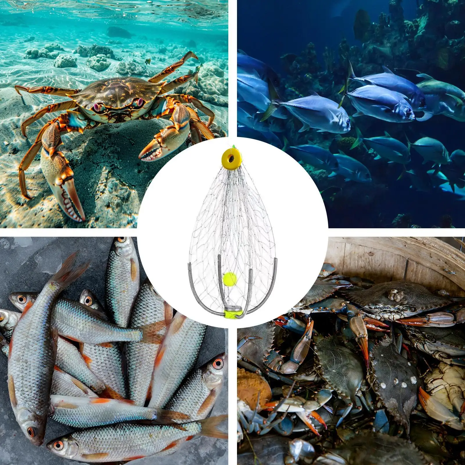 The NEW Automatic Crab Trap is designed for efficient fishing with its foldable design and automatic opening mechanism. This trap is perfect for both freshwater and saltwater environments, making it an essential tool for any angler looking to catch crabs and other aquatic creatures.