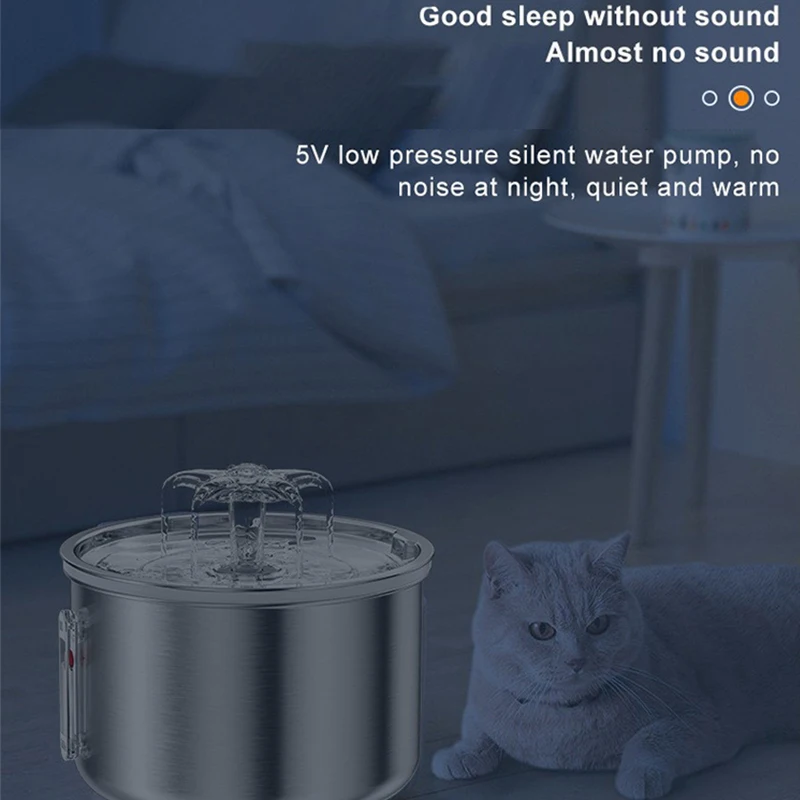 This automatic cat water dispenser features a stainless steel design that ensures durability and hygiene. It provides a continuous flow of fresh water for your pets, encouraging them to stay hydrated.