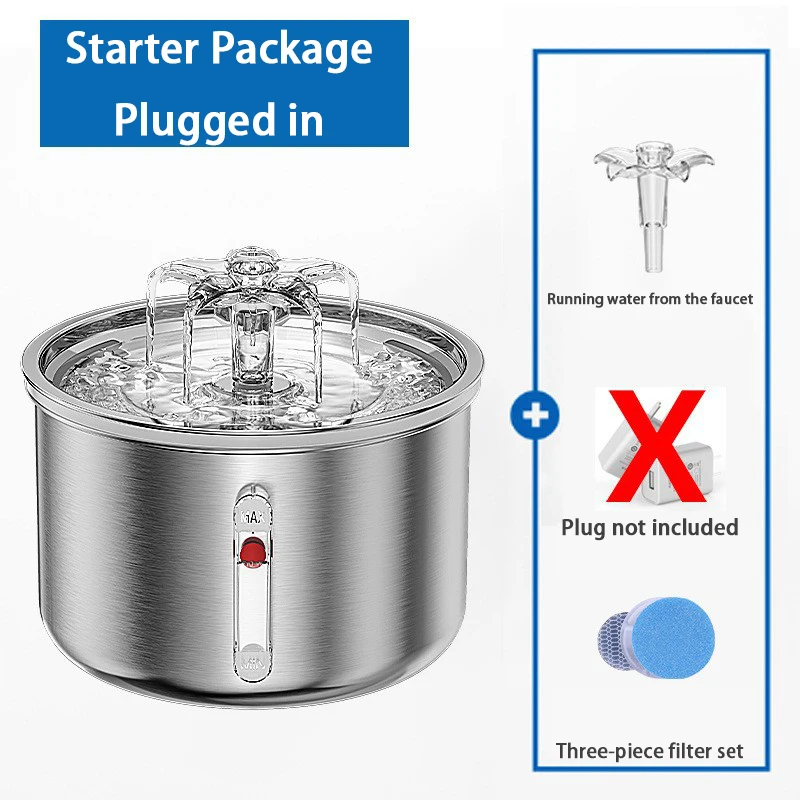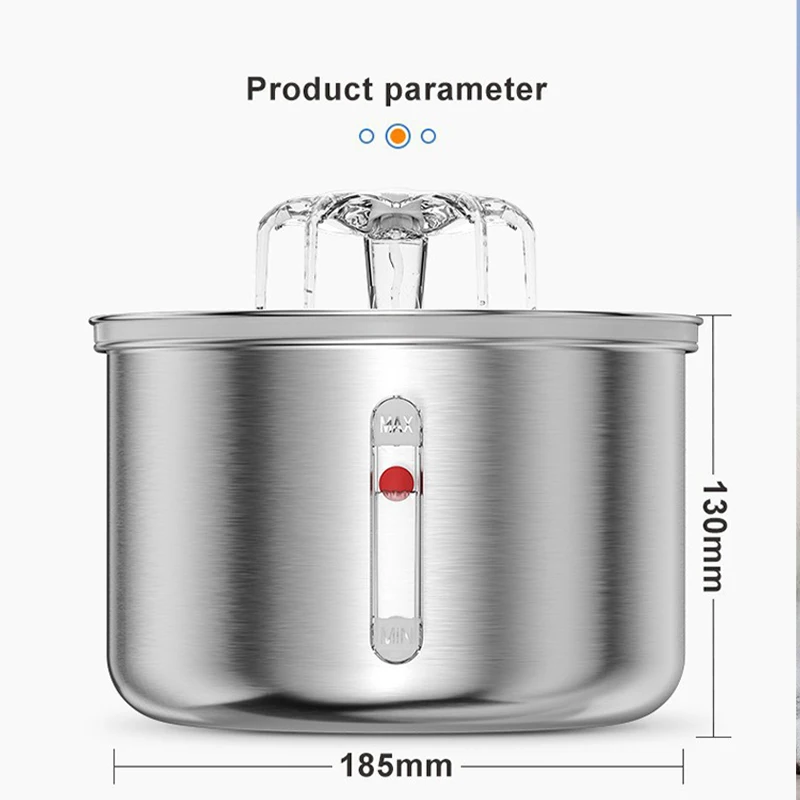 New Cat Water Dispenser Stainless Steel Automatic Recirculating Filtration Watchable Water Level Pet Water Feeder