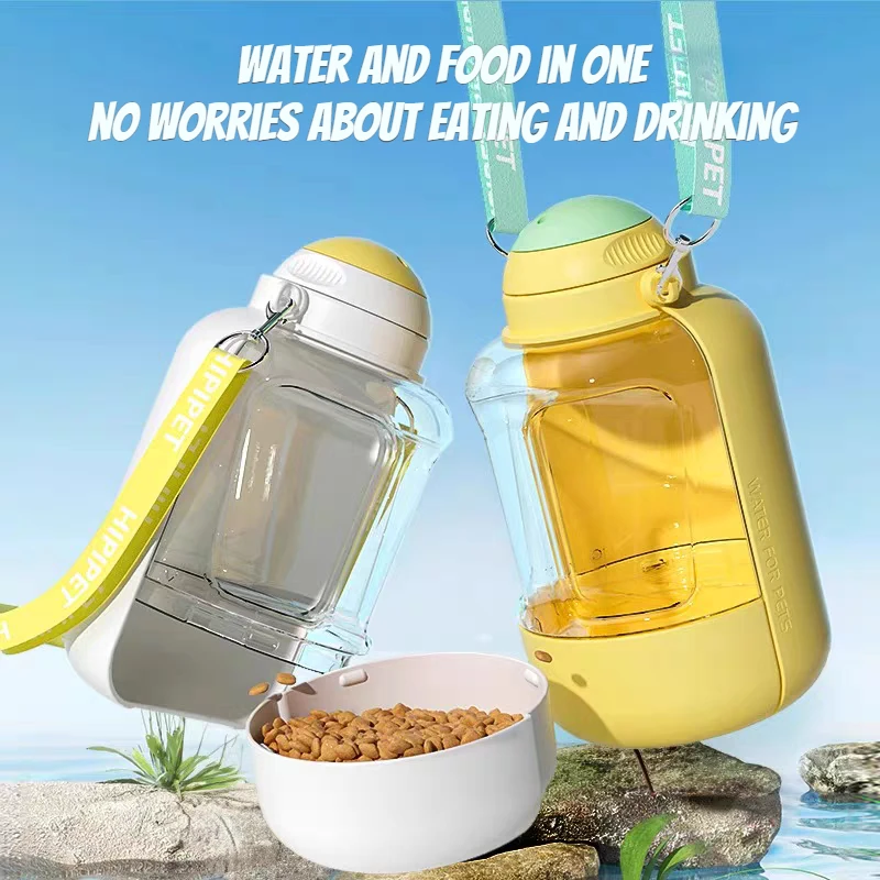 New dog ton ton large capacity pet drinking pot and cat water dispenser, portable water cup with integrated bowl for both water and food.