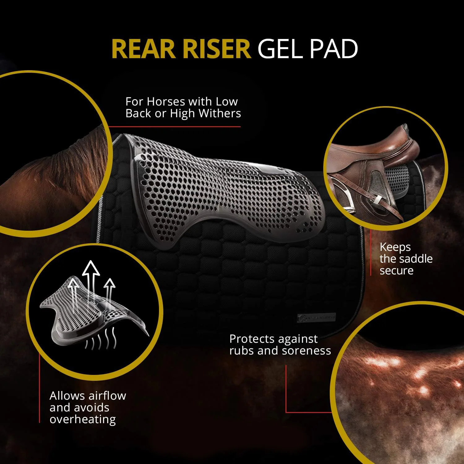 • Anti-Slip Gel Saddle Pad: Gel-infused design prevents slipping, ensuring a secure ride for both horse and rider.