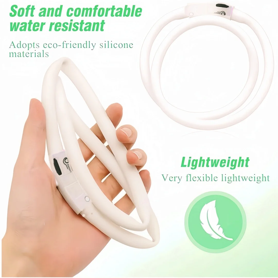 - Fully USB Rechargeable: The collar can be charged via USB, providing 6-8 hours of illumination after a 2-hour charge. It features four lighting modes: constant light, fast flash, slow flash, and flowing flash.