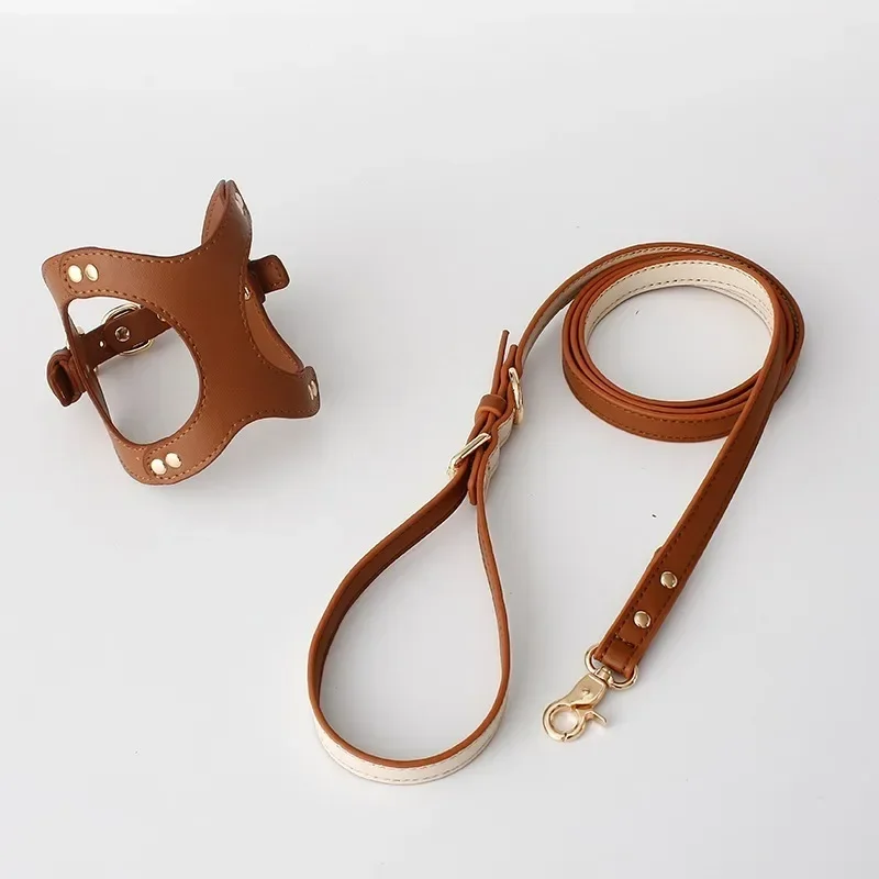 Luxury Leather Pet Chest Strap Set Dog Leash Walking Cat Rope for Small Medium Dogs