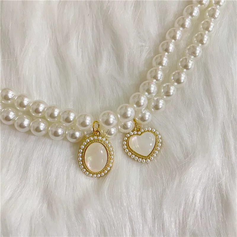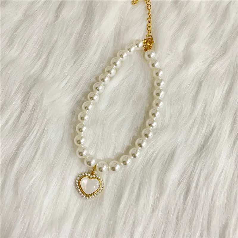 Pet Collar Pearl Love Necklace Cute Jewelry for Cats and Dogs Accessories