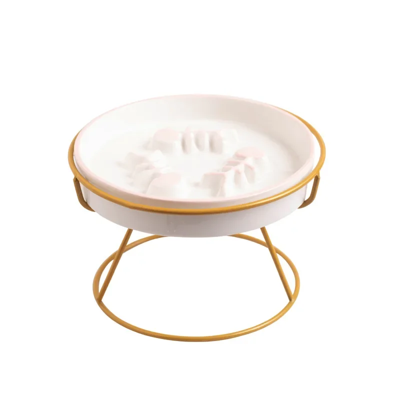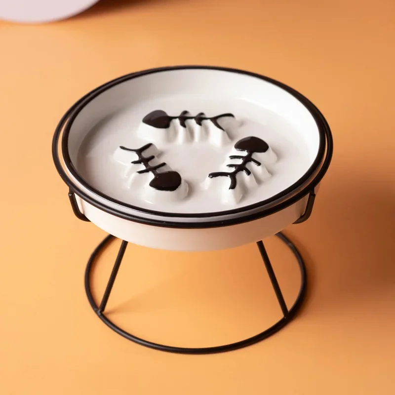 New Practical Cat Bowl Ceramic Slow Food Plate Bowl Slow Food Anti Choking Grain Bowl High Foot Protection Spine Anti Black Chin