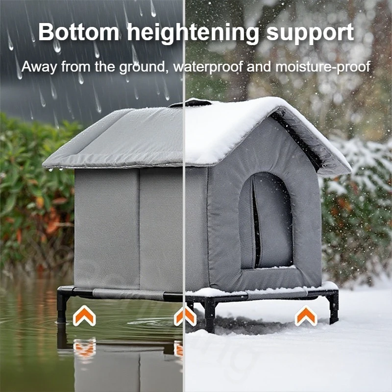This elevated outdoor portable stray cat nest is designed to provide warmth and shelter for your pets during winter. Its waterproof construction ensures that your furry friends stay dry, while the spacious interior offers a comfortable resting area.
