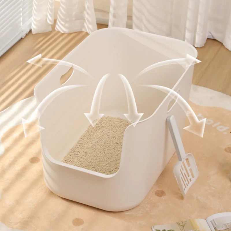 Open Style Cat Litter Box Simple Thick Large Capacity Prevent Splashing Comfortable Toilet