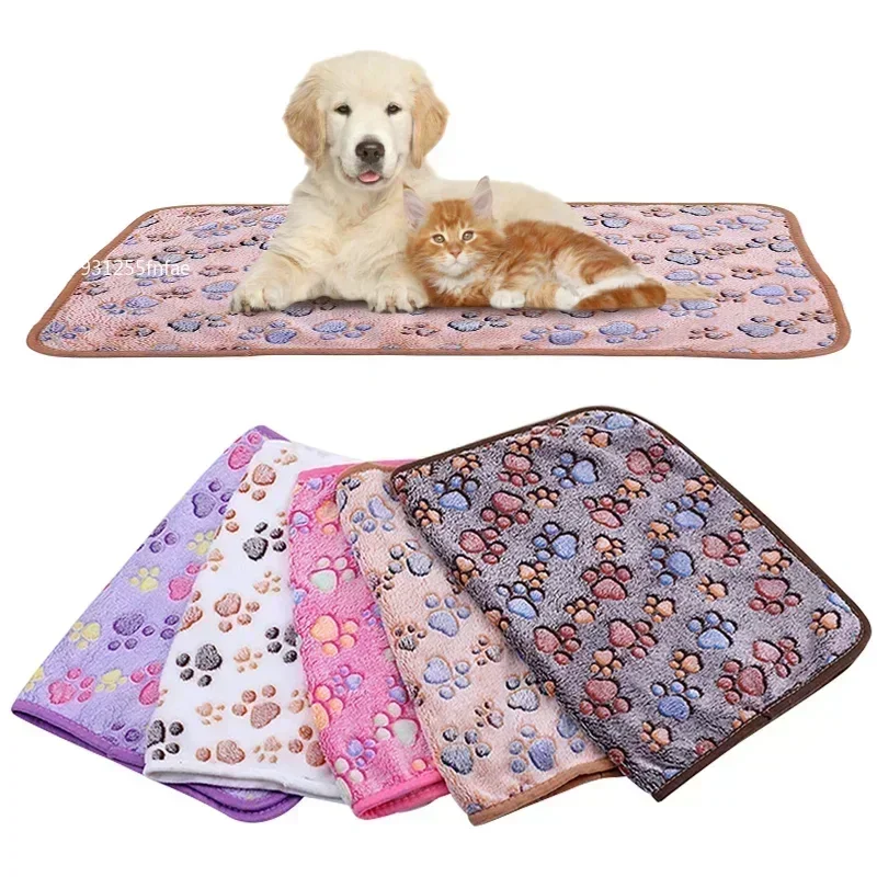 Introducing the Pet Blanket, a soft and cute fleece mat designed for both dogs and cats. This lovely cushion features adorable paw prints and provides a cozy sleeping space for your pets.