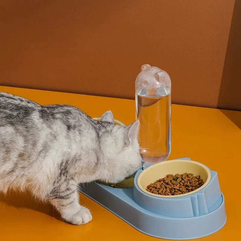 Pet Cat Bowl Automatic Feeder Dog Food Bowl With Water Fountain Double Bowl