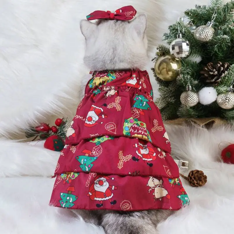 Pet Cat Dress Clothes Christmas Dog Dress Slip Dress Coat Red Skirt Costume