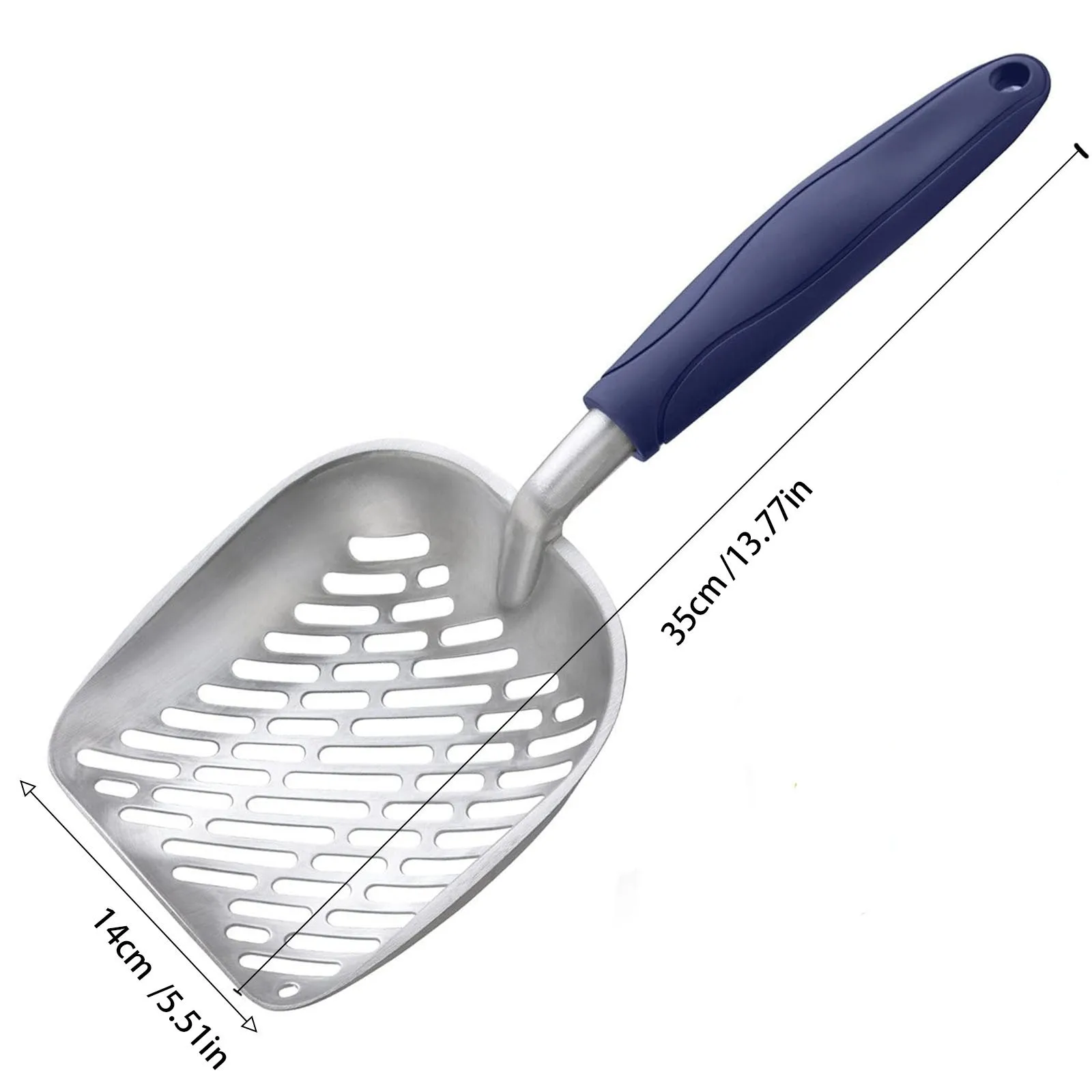 This stainless steel cat litter scoop features a long handle for easy use and effective cleaning of your cat’s litter box. Its durable design ensures it can handle daily scooping tasks with ease.