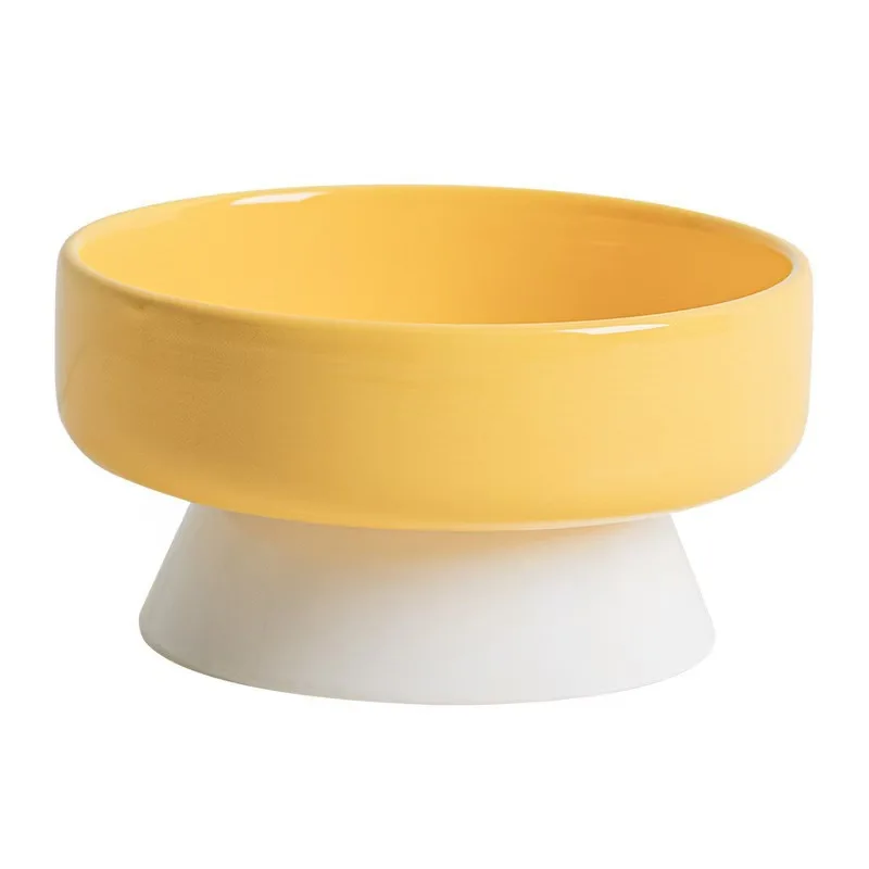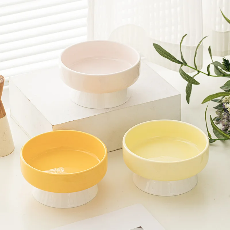 Cat Bowl Ceramic High-Foot Neck Guard Food Bowl Shallow Mouth Large Caliber