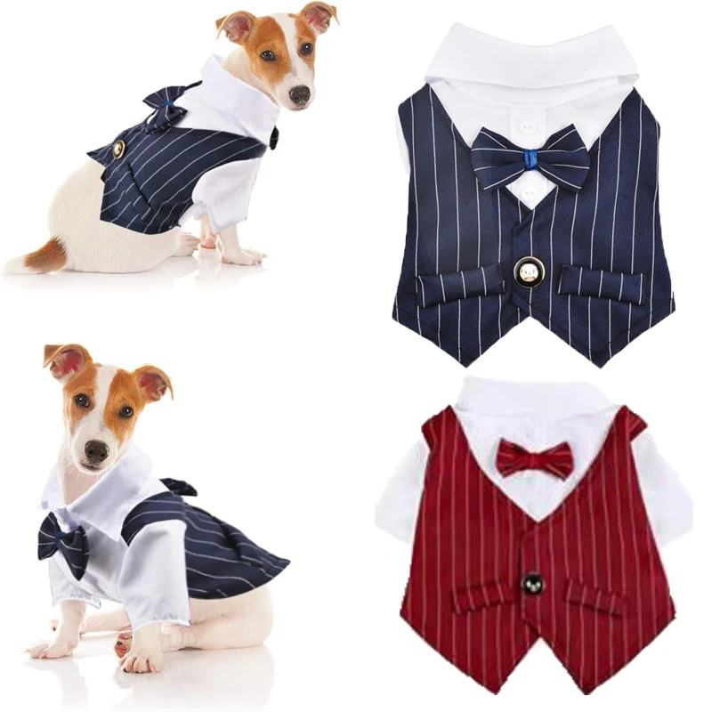 Classic pet tuxedo style waistcoat and shirt with a bowtie attached to each side for great viewing from both side. Absolutely perfect for a wedding! I received the correct item, colour, size and quantity ordered from this reliable seller. Thank you :) i recommend.
