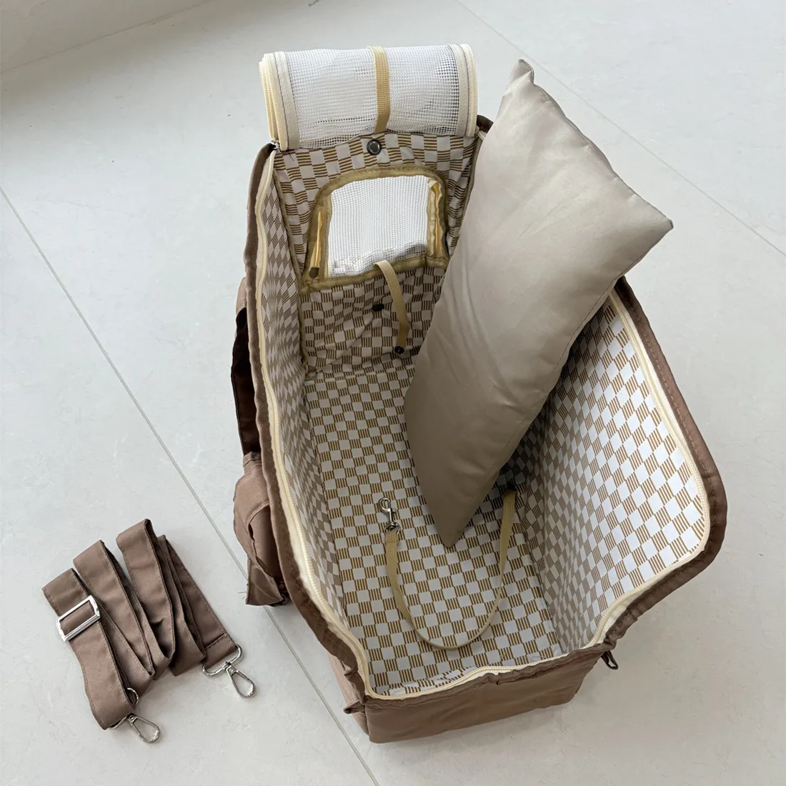 This Pet Crossbody Shoulder Bag is designed for convenient travel with your small pets, such as cats and dogs. It features a comfortable shoulder strap and a waist buckle for added safety during car rides. The bag is spacious enough to hold your pet’s essentials while ensuring their comfort.