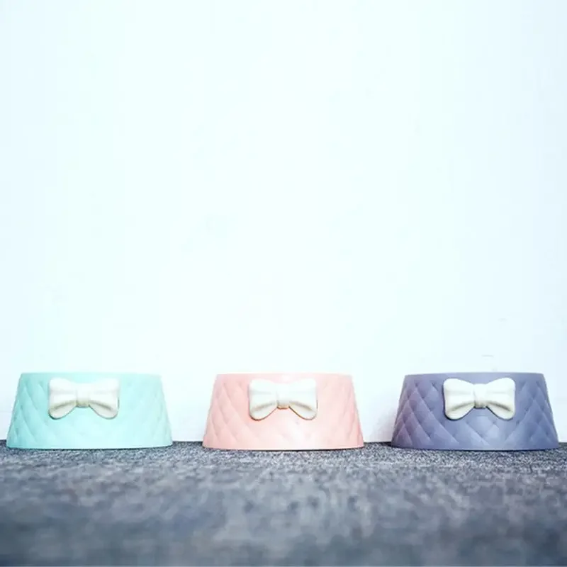 Pet Dog Food Bowls Lovely Bowknot Puppy Feeder Dish Bowl Cat Bowl For Water