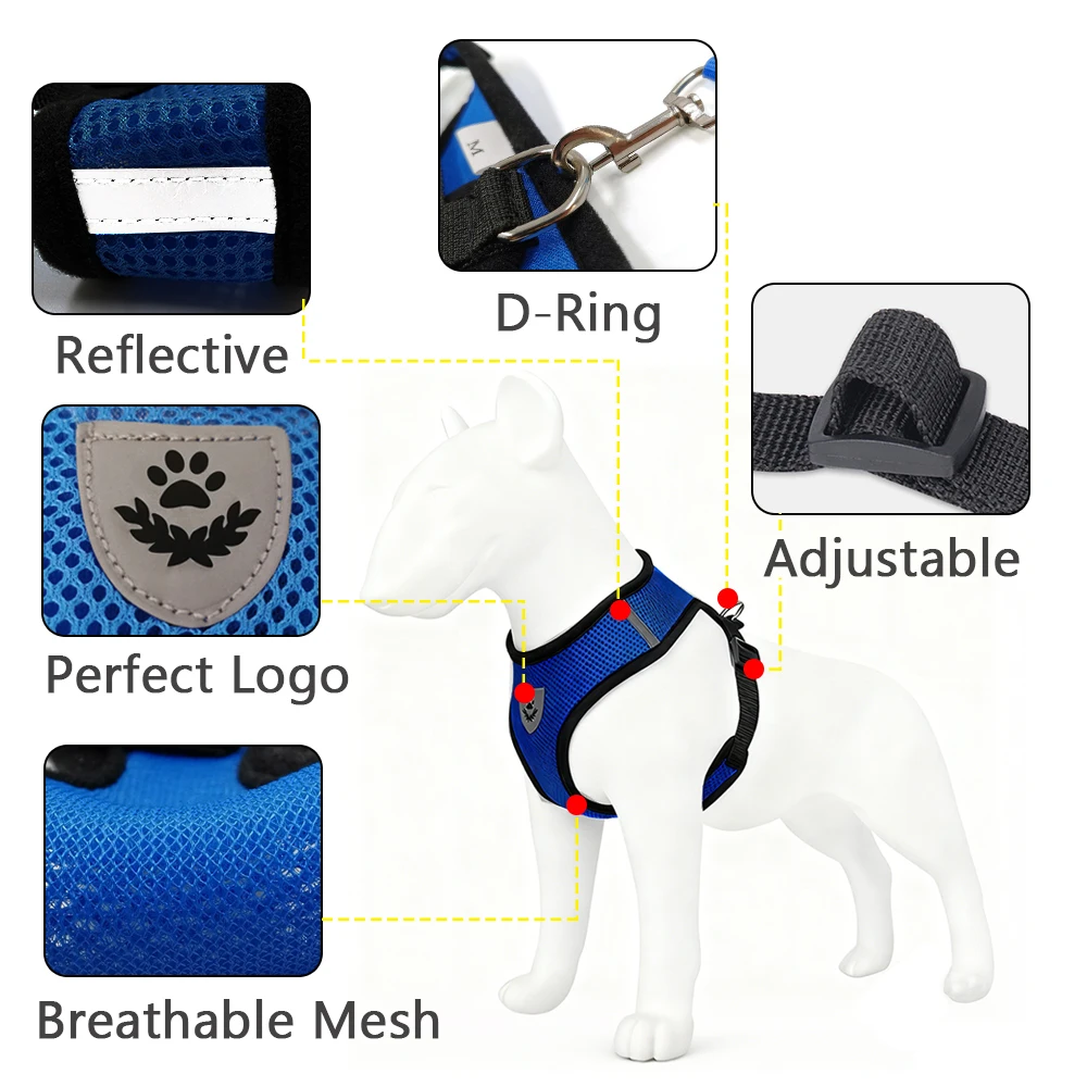 Pet Harness Leash Set Reflective Hiking Puppy Mesh Vest D-Ring Small Dogs Cats