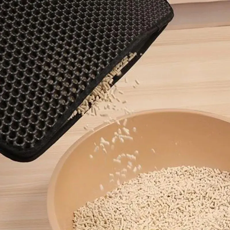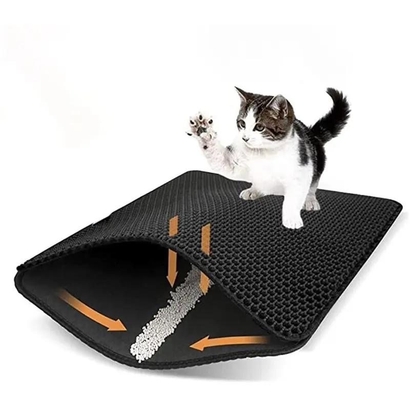 This waterproof double layer pet litter mat is designed to keep your home clean and tidy while providing comfort for your cat. The mat features a non-slip surface and is washable, making it a practical addition to your pet supplies.