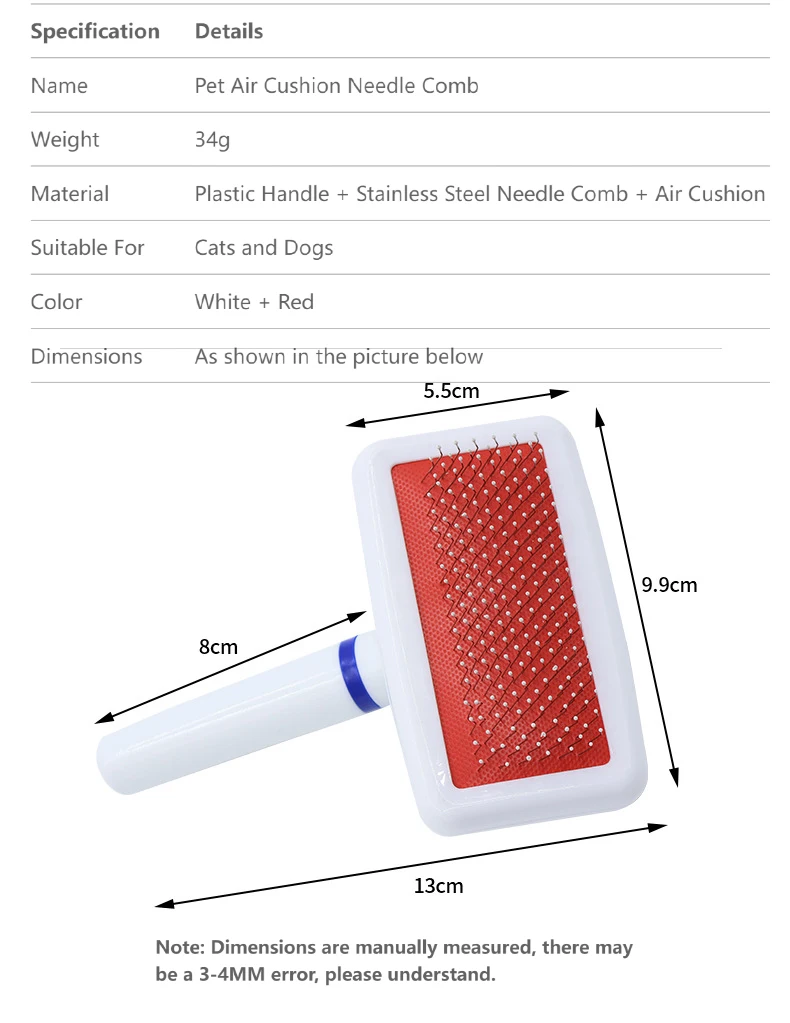 The Pet Slicker Brush is an essential grooming tool designed for dogs and cats, including breeds like Poodles, Maltese, and other small pets such as puppies, kittens, guinea pigs, and rabbits. This massage grooming brush effectively helps in deshedding and detangling fur, ensuring a comfortable grooming experience for your pets.