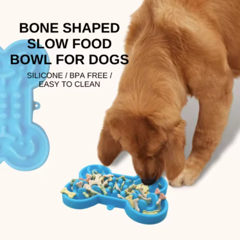 Pet Slow Food Bowl Silicone Bone Shaped Anti Skid Dog Bowl for Cats Feeding