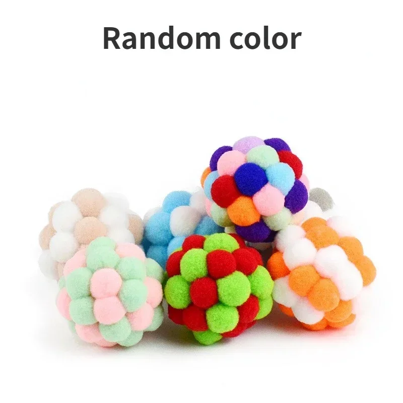 Cat Plush Ball Toy Bouncy Bell Colorful Pompoms Pet Supplies for Cats