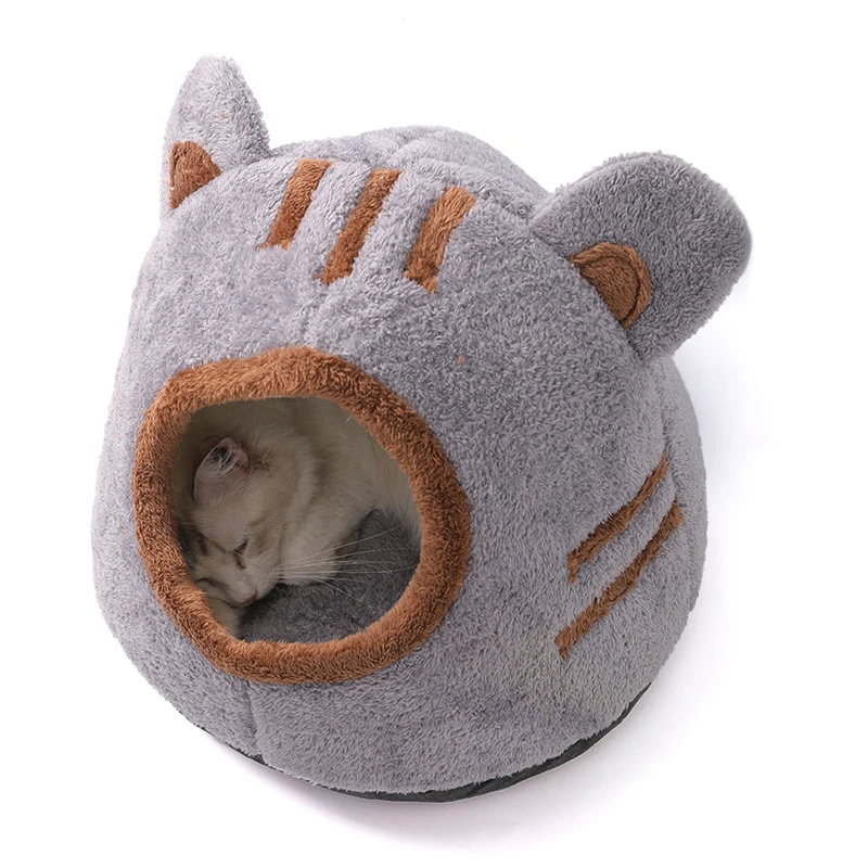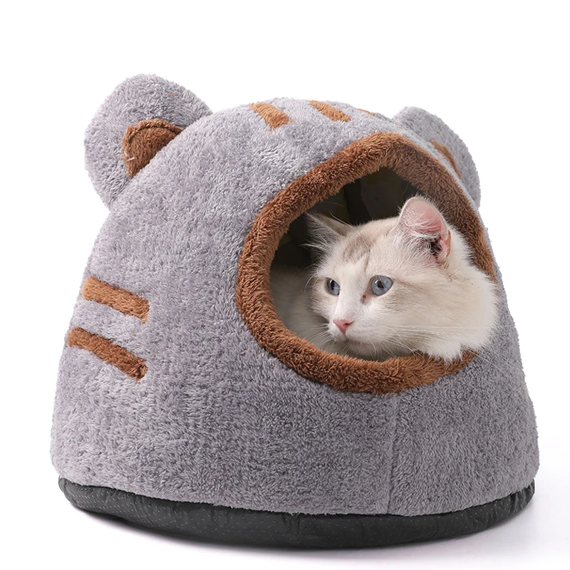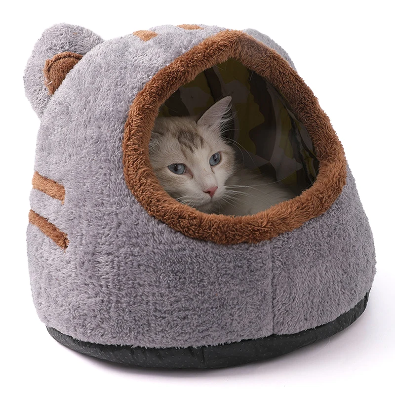 The Pets Tent Cozy Cave for Cats is a soft and self-warming kitten bed designed for winter comfort. Its cute bear head shape provides a cozy and inviting space for your feline friend to enjoy deep sleep.