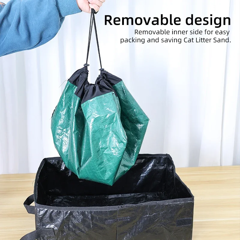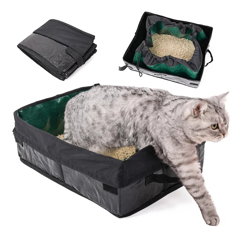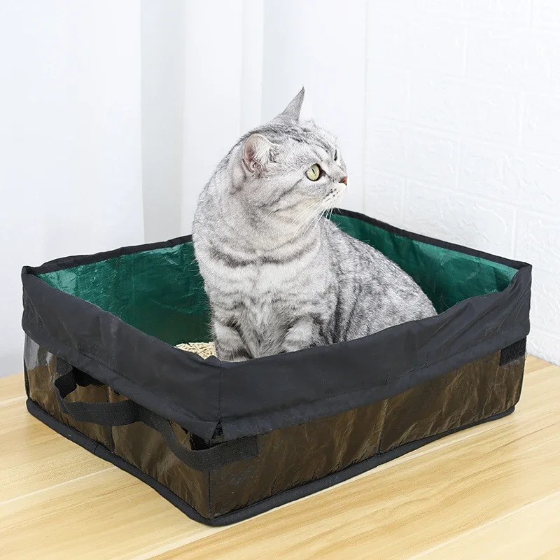 Portable Cat Litter Box Outdoor Reusable Travel Oxford Litter Pan Waterproof