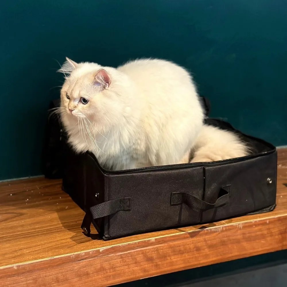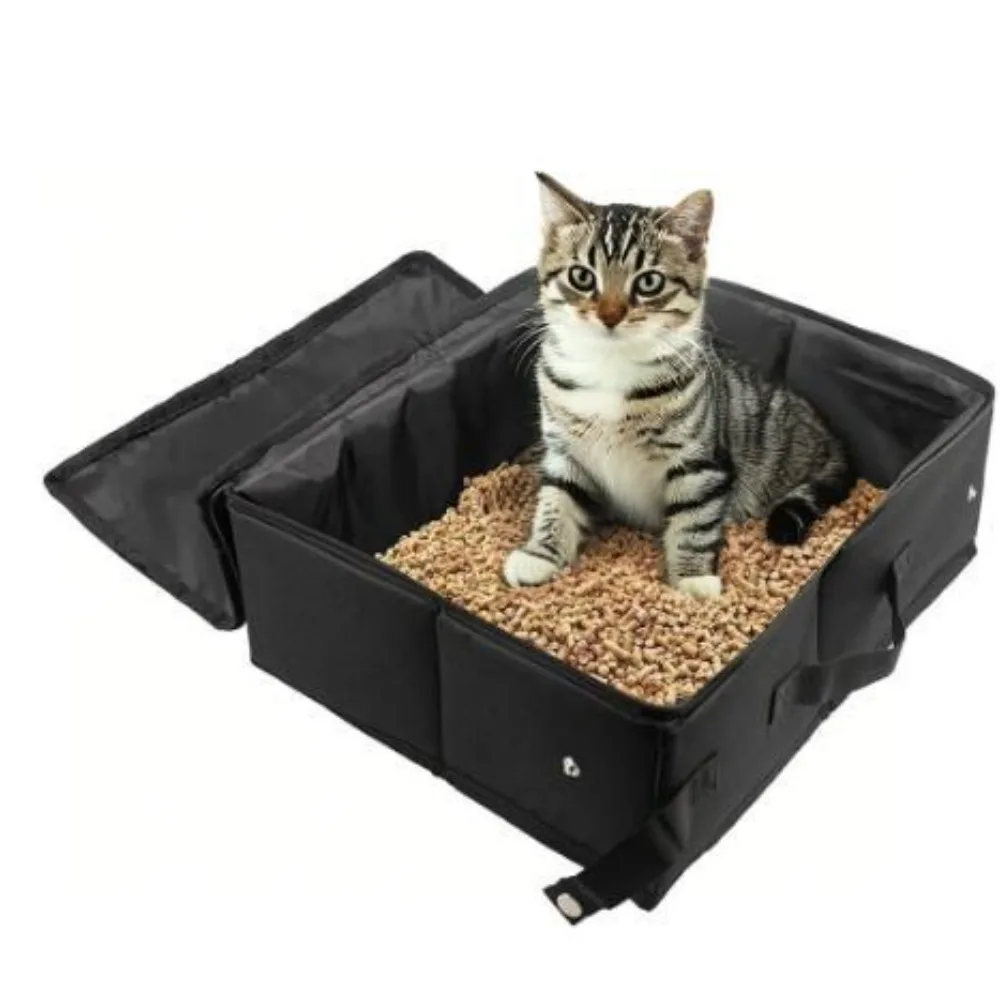 This portable cat litter box is designed for both travel and home use, featuring a waterproof Oxford fabric that ensures easy clean-up. Its enclosed tray provides privacy for your cat while keeping the surrounding area tidy.
