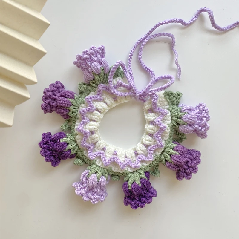Cat Dog Knitted Collar Crochet Collar Pet Drool Scarf Bib Orchid Bell Flower