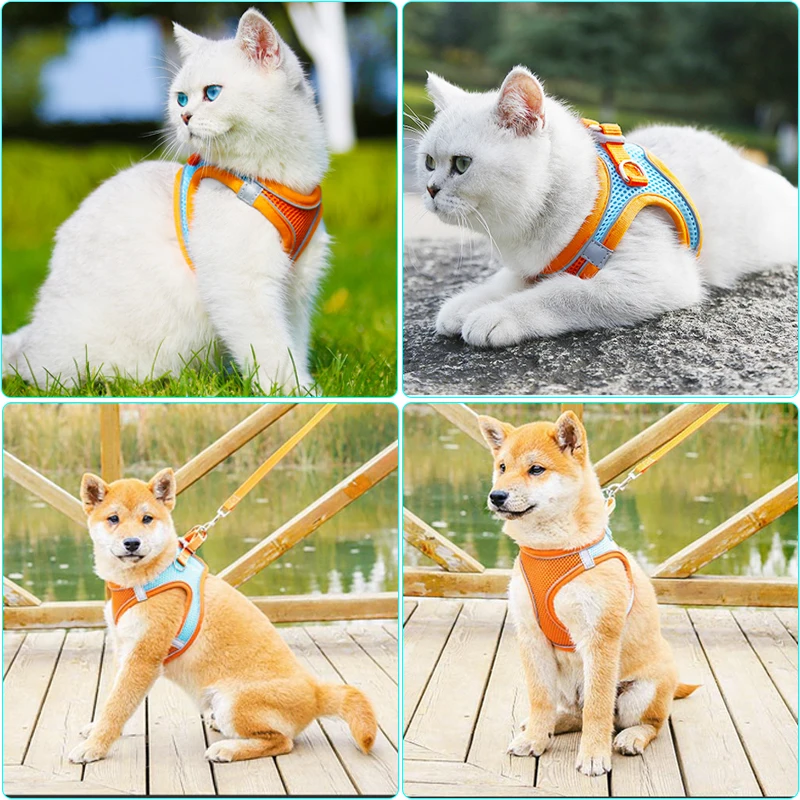 This reflective dog harness and leash set is perfect for small to medium dogs and cats, ensuring a comfortable and secure fit during walks. The harness is designed with soft, breathable materials to enhance your pet’s comfort while minimizing strain on their neck.